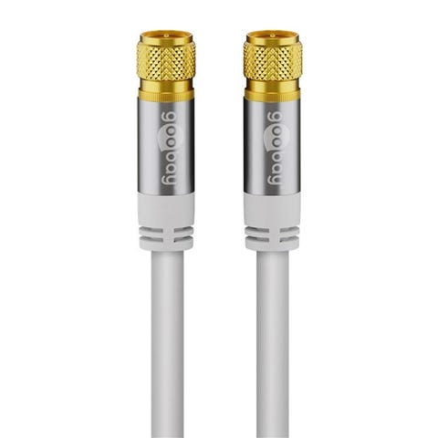 PRIS-MATCH! F-stik antennekabel (vinkel F-stik), hvid | Hvidt 4x afskærmet antennekabel af højeste kvalitet, der kan håndtere digitale DVB-T/C/S 4K signaler. Kablet er monteret med vinklet F-stik.