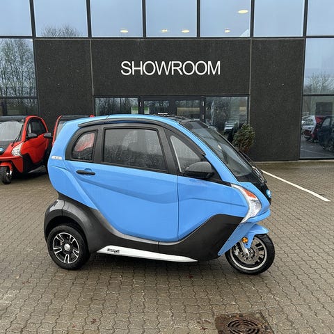 El-scooter , brede dæk og lav indstigning. Modellen har digitalt display på styret, forlygte integreret i fronten og affjedring bagtil. Sædet er polstret og beregnet til én person. Velegnet til kørsel på asfalt og kortere byture. Registreringsplade bagpå angiver, at køretøjet er indregistreret som lille motoriseret køretøj/scooter.