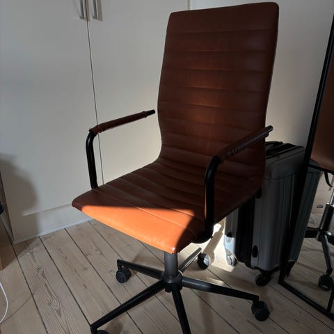 Kontorstol sælges. Så god som ny og ingen bemærkelsesværdige tegn på brug. Afhentning på købers ansvar