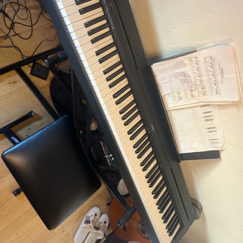 Digitalt klaver med 88 tangenter i sort kabinet. Instrumentet har indbyggede højttalere og flere forskellige lyde, blandt andet klaver, el-klaver, orgel, strygere og kor, som kan vælges via knapper over tangenterne. Der er regulering af volumen samt funktioner til optagelse og afspilning. Klaveret står på et fast stativ og har nodestativ monteret bagved. Der er også pedal med, Velegnet til øvning derhjemme eller i øvelokale, hvor der er behov for et fuldt klaviatur og indbyggede lyde.