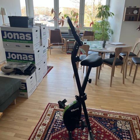 Motionscykel fra Kilberry. Købt til genoptræning her på DBA i 2023 for 400 kr. Havde en lille defekt i display ved køb. Lige nu trænger display til nyt batteri. Har knækket den ene strop på pedalen. Kan afhentes i Karlslunde