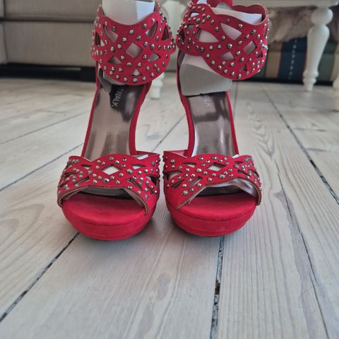 Jeg sælger den for min søster, som har brugt dem minimalt. Kun let slid på hælene, som ses på billederne, og let tryk ved den ene skosnude. 9,5 cm høje.