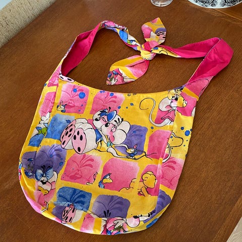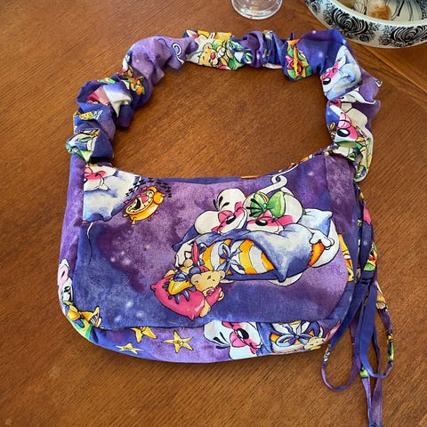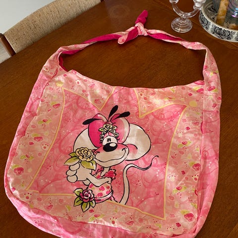 Upcycled Diddl crossbody taske, de er hjemme syet og designer af mig. Jeg har købt aflagte Diddle, hello kitty, Lego sengetøj sæt og upcycled dem til tasker! Både crossbody og 2 størrelser muleposer ✨ Tjek min profil ud for flere tasker