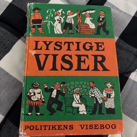 Politikens Lystige Viser 1 sangbog. Bog med samling af lystige viser og sange, udgivet af Politikens Forlag. Velegnet som sangbog til brug i hjemmet, til fællessang eller som reference til danske viser.