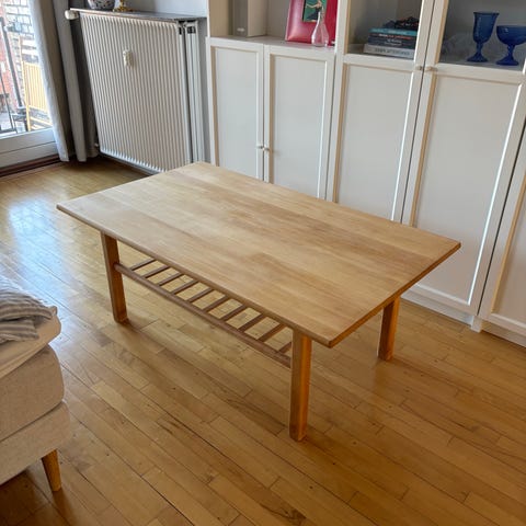 Sofabord i bøgetræ med tidsskrifthylde samt bordklapforlænger. Uden brugsspor. Ved evt. handel er afhentning bedst søndag d. 8 marts kl. 10-12. Ellers aftales anden dag. Pris 250,- kr.