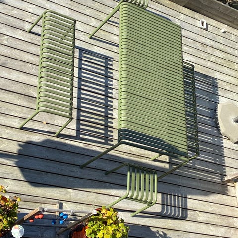 Superfint havemøbelsæt fra Hay. Hay Palissade i sort. Består af 1 bord og 6 stole med armlæn.