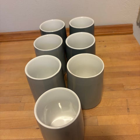 Stelton krus i mørkegrå keramik. Ydersiden har mat overflade, mens indersiden er glaseret. Krusene har hank og er egnede til varme drikke som kaffe, te eller kakao. Leveres som sæt med to krus