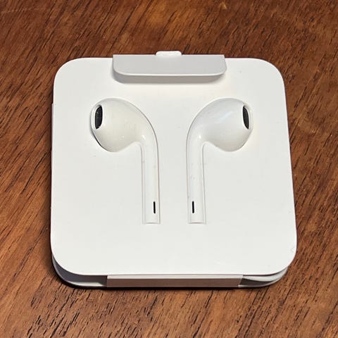 Helt nye Apple EarPods hovedtelefoner med 3,5 mm jackstik i hvid. Ledningsbaserede in‑ear øretelefoner med indbygget fjernbetjening og mikrofon på kablet til styring af lyd og håndfri opkald. Passer til enheder med 3,5 mm hovedtelefonudgang.