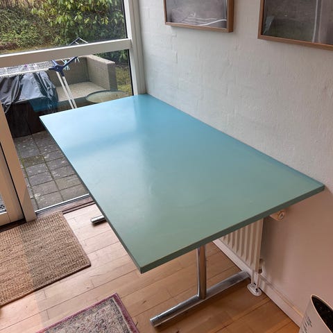 Væg monterede skrivebord i flot blå. Mål er 90cm (L) x 35cm (D) x 25cm (H). Kom med budt!