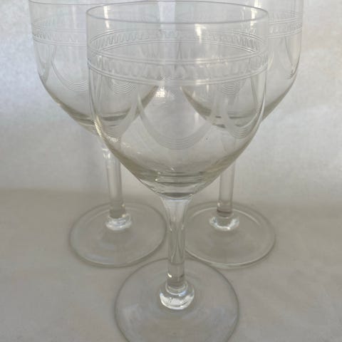 Kastrup glasværk. Betty, hvidvin med grønt skær og ætset mønster 7 stk. i alt.