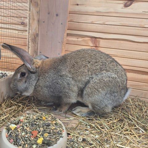 Han er en meget rolig og kærlig kanin, som elsker at blive nusset.
