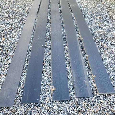 Antracit grå hardiplank. 4 hele planker og lidt der er skåret i.