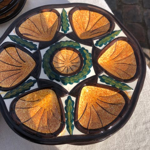 Lækker østers tallerkner fra Frankrig, grå/hvide. Der er 6 stk. pr. Stk. 175.-