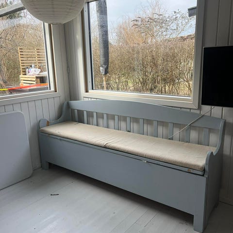 Rigtig fin gammel svensk slagbænk med opbevaring.