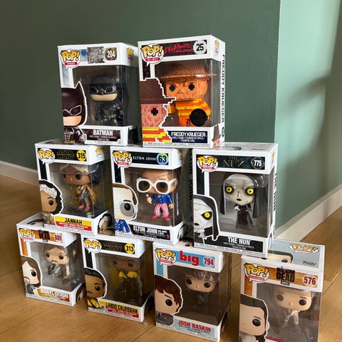 Funko Pop! figurer Spikey, Doctor Strange og John Wall. Spikey er fra Killer Klowns from Outer Space-serien, Doctor Strange er fra Marvel-serien, og John Wall er fra NBA-serien. Alle tre figurer leveres i deres originale Funko Pop! æsker og er velegnede som samleobjekter eller udstilling på hylde eller skrivebord.