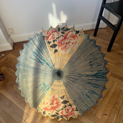 Japan parasol, Papir og træ, 100 år gl., Sjælden og original japansk papir parasol 100 år gammel.
