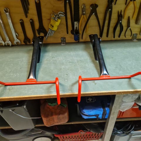 DKBIKE vægophæng til cykel med hjulholder og udstyrskroge sort metal
