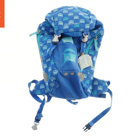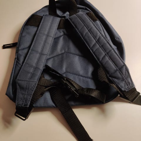 En farverig børnerygsæk med enhjørningmotiv. Rygsækken har flere lommer og justerbare stropper. Det ser også ud til at have en matchende penalhus med samme enhjørningdesign. Der er også forskellige mærker og badges på forsiden og siderne af rygsækken. Rygsækken er 43 cm høj, 14 cm bred, og 30 cm dyb, og er ideel til skolebrug og dagsture.