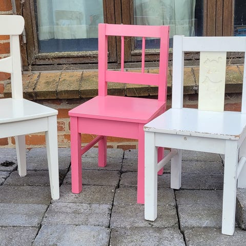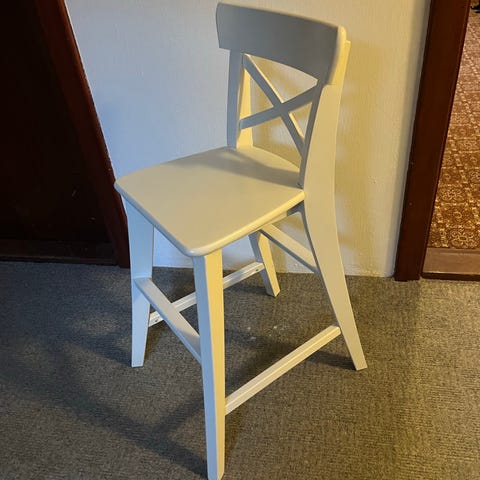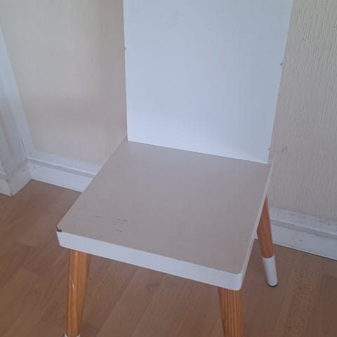 To hvide børnestole med udskæringer fra IKEA (str. 53,5x28,5x26 cm)