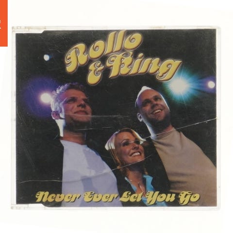 CD med titlen 'Der står et billede af dig på mit bord' af Rollo & King. Indeholder flere sange som angivet på bagsiden af coveret. Coveret viser en blomst med gul og rød grafik. Produceret af Mega Records i 2000.