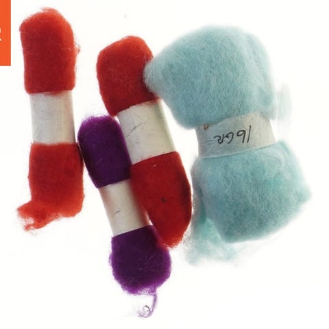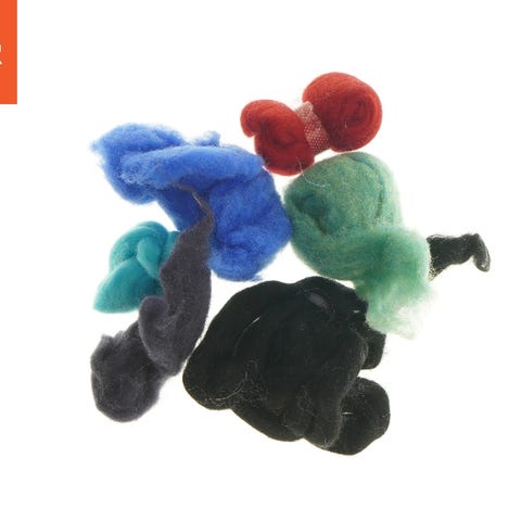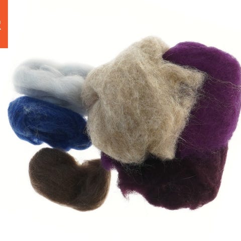 Billederne viser en samling af farvet uldfiber i forskellige nuancer, herunder rød, blå, gul, grøn, lilla, sort og brun. Disse uldfibere kan bruges til filtning og andre kreative projekter, hvor tekstilmaterialer er nødvendige.