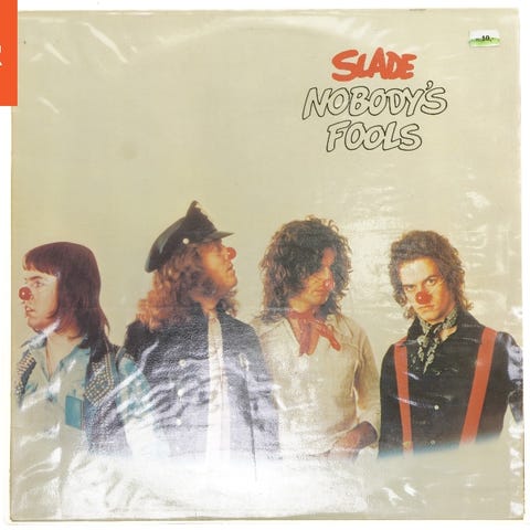'Nobody's Fools' er et studioalbum af rockbandet Slade med 14 numre fordelt på to sider. For og bagsiden af coveret viser albumtitlen og en liste over sangtitlerne.