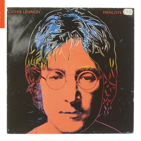Vinyl album titled 'Imagine' by John Lennon with artwork featuring a cloudy sky. The cover shows text including the album name and artist. The back cover presents a different angle with album details such as PAS 10004 and other serial numbers.