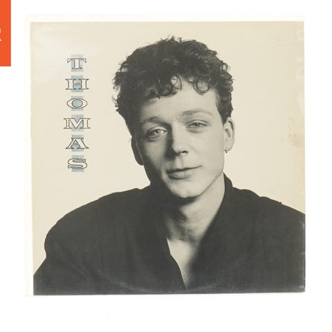 En LP med titlen 'Thomas'. Forsiden viser bogstaverne THOMAS og bagsiden indeholder en trackliste og information om albumproduktionen. Albummet indeholder flere sange fordelt over to sider. Bagsiden har også en note om albummet, produceret i 1985.