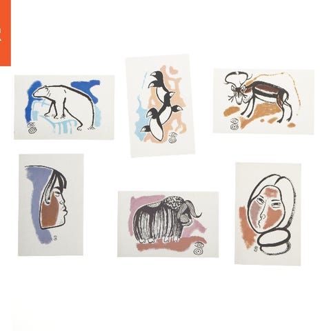Dette er en samling af seks postkort med motiver af arkitektur og interiør fra forskellige lokationer. Postkortene måler hver 17x12 cm og viser detaljer som åbne døre, store sale med sort-hvidt ternet gulv, antikke møbler og udstillinger fra et museum. Bagsiden af postkortene er tomme, hvilket gør dem velegnede til at sende som traditionel post eller til samling.