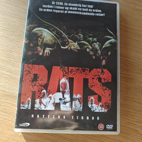 Rabies dvd film. Fysisk dvd-udgivelse i plastcover med trykt omslag. Disken indeholder spillefilmen "Rabies". På bagsiden findes kort handlingsbeskrivelse og billedmateriale fra filmen. Velegnet til afspilning på standard dvd-afspillere, der understøtter dvd video-format.