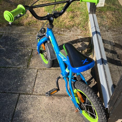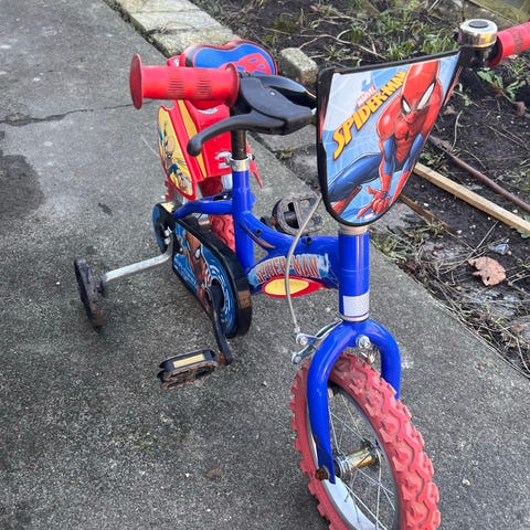 Batman børnecykel med 12" hjul i sort og gul. Cyklen har kædeskærm og skærme for og bag med Batman-motiver. Den er udstyret med forhjulsbremse på styret, pedaler med skridsikker overflade samt saddel med Batman-design. Egnet som lille børnecykel til korte ture og leg. Farvetemaet er sort med gule detaljer og tryk med Batman-figur på kædeskærm og frontskjold.