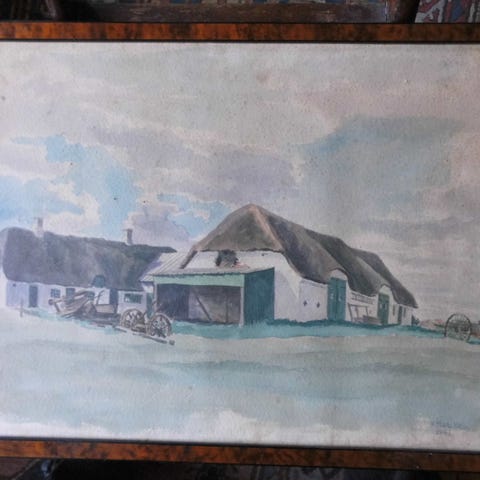 Billedet er monteret i træramme med glas. Ydre rammemå 35 X 45 cm.