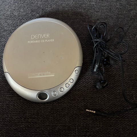 Bærbar Denver CD-afspiller med radio. Denne type enhed kaldes ofte en "boombox" og er designet til at afspille musik fra både CD'er og radiostationer.