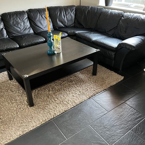 Sort lædersofa måler 2x2,5 meter