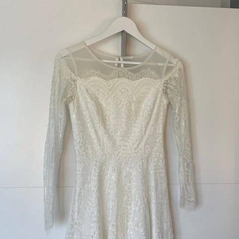 Virkelig smuk og elegant konfirmationskjole fra Unique kjoler. Har skjult lynlås i ryggen, blondeærmer og asymmetrisk nederdel. Sælges da den desværre er blevet for lille. Nypris: 3000