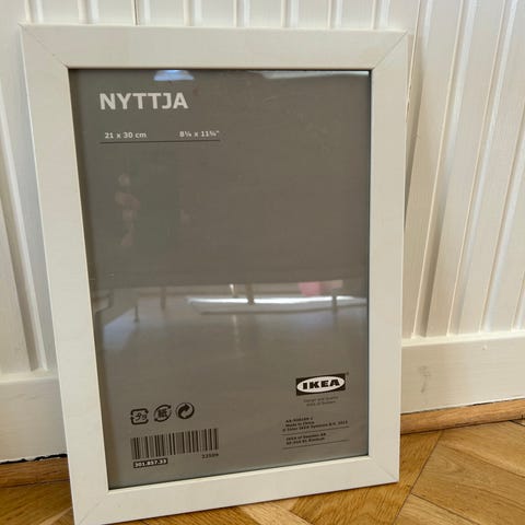 2 stk. 20kr/pr stk. IKEA NYTTJA billedramme i hvid. Rammen er velegnet til ophængning af plakater, fotos eller andre billeder i hjemmet eller på kontoret. Enkel og let ramme, der passer ind i de fleste indretninger.