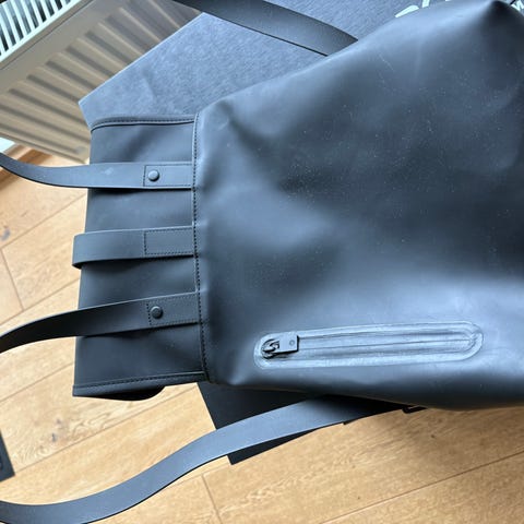 Rains taske i kunstlæder til unisex. Tasken har et glat, vandafvisende ydre og lukkes med klaplåg og remme med metalringe. Designet er enkelt og funktionelt og egner sig til daglig brug, f.eks. til arbejde, studie eller fritid. Velegnet til at bære personlige ejendele som mindre elektronik, dokumenter og hverdagsting.