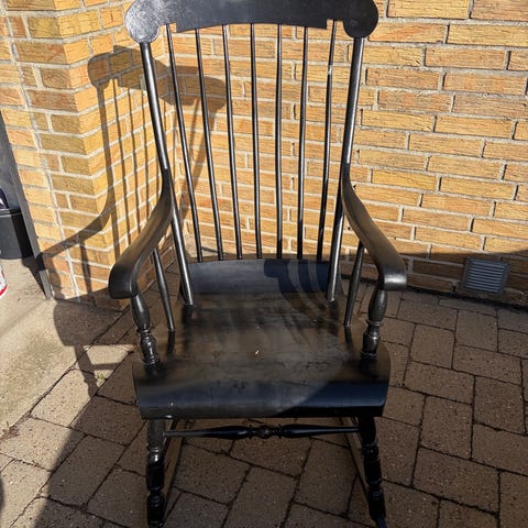 Træ gyngestol der trænger til en gang maling eller afslibning - men ellers fejer den ikke noget.