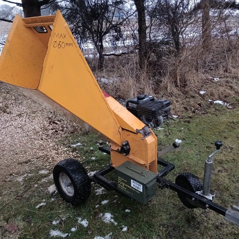 Tager pinde/grene op til 6cm diameter og kværner dem uden problemer.