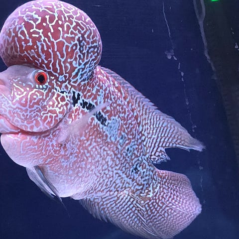 Super fine ungfisk af denne flowerhorn 😀. De er 7 cm nu ca og vokser godt de er i rigtig god kvalitet.