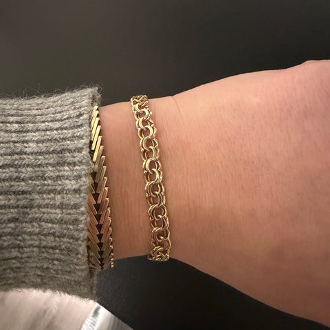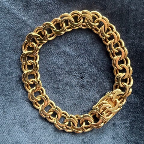 Bismark armbånd i 18 karat guld kvinde. Længden kan aflæses på målebåndet på billedet.