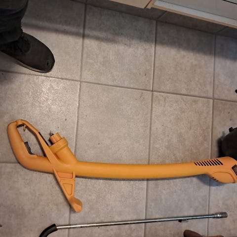 Orange dæksel til trimmersnæren (i bunden) er gået i stykker og skal udskiftes (se billeder)