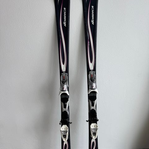 Nordica Sentra S5 alpinski i længde 170 cm. Skiens overflade er primært hvid med røde og sorte detaljer. Modellen er egnet til alpint skiløb på pister. Der medfølger monterede bindinger samt et sæt skistave, som ses på billederne. Velegnet til brugere, der ønsker et par carvingski til almindeligt pistebrug.