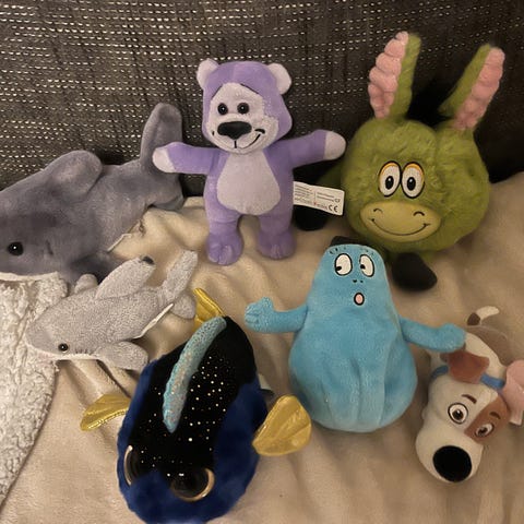 Sættet består af to bløde plysdyr formet som fugle, herunder en papegøje og en tukan. Egnet som legetøj til børn eller som pynt på værelse. Fremstillet i blødt tekstilmateriale med fyld, i flerfarvet design.