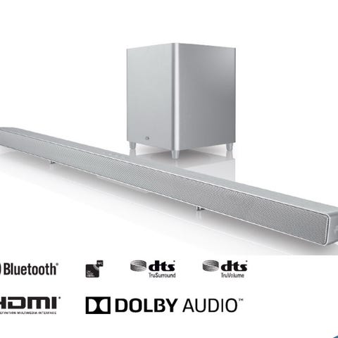 Avanceret og elegant TV-soundbar med Dolby Atmos, batteridrevne trådløse surround-baghøjtalere og 10” trådløs subwoofer.