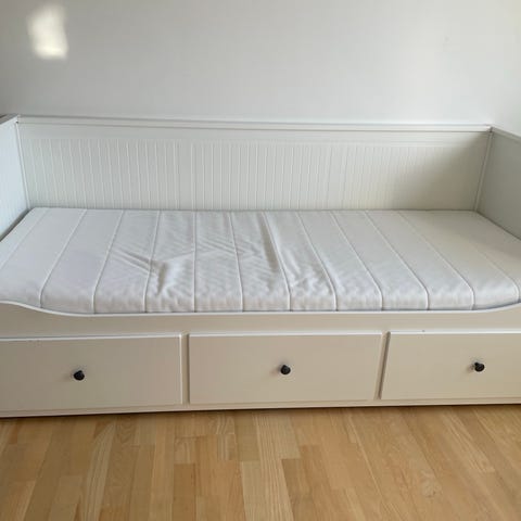 Brimnes udtræksseng inkl. 2 madrasser og to sengeskuffer.