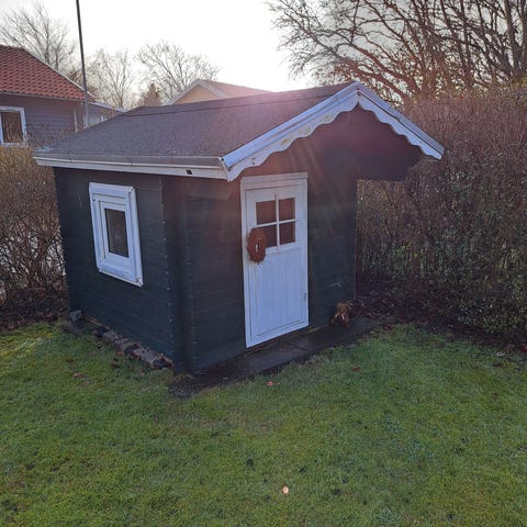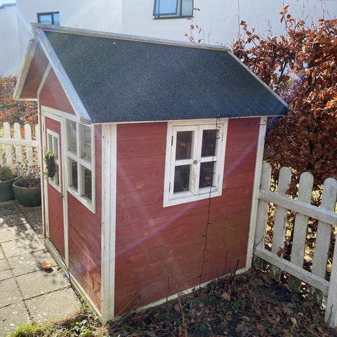 GRATIS Legehus i træ i gul farve. Huset har saddeltag, frontdør med lille vindue og sidevindue. Velegnet som udendørs legehus til børn i haven. Trækonstruktion med bræddevægge og tag med tagpap. Legehuset er af ældre dato, men tagkonstruktionen er lavet i 2020. Forældres væk - enten hele konstruktionen eller eksempelvis blot taget. Skal gøres i denne weekend (6.-9. marts).