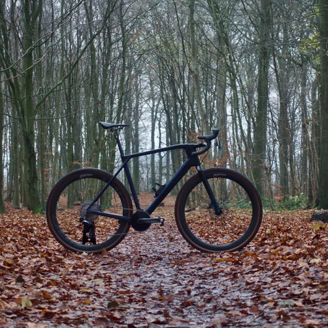 Canyon Grail CF SL i størrelse M. En alsidig gravelcykel med den unikke double-decker cockpit, der sikrer høj komfort og kontrol på både grus og asfalt.