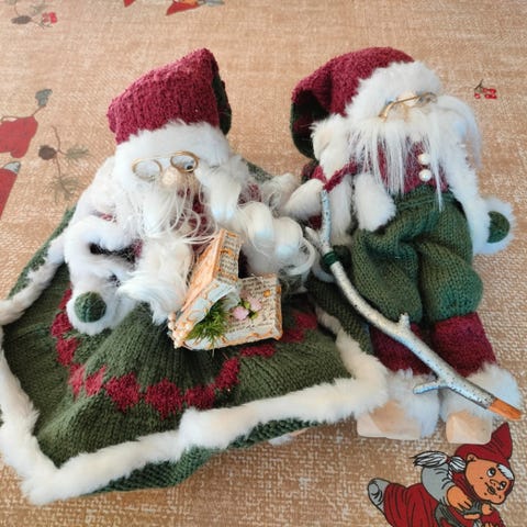 Nissepar, Nissepar med tøj i strik og filt og tunge fødder, så de står solidt. - Pynter overalt og er helt som nye. Højde 32 cm-