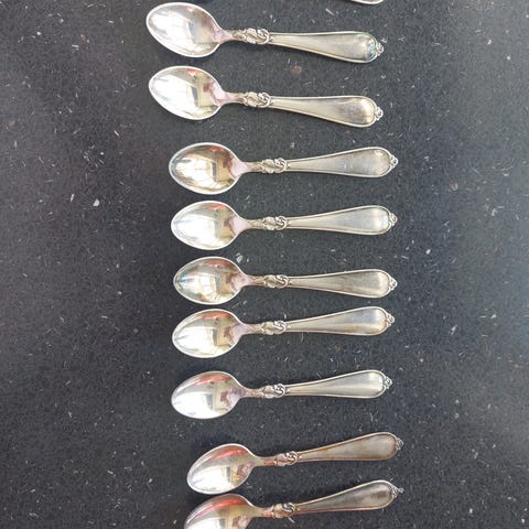 Bestik sæt med knive, gafler og skeer med lyse skæfter